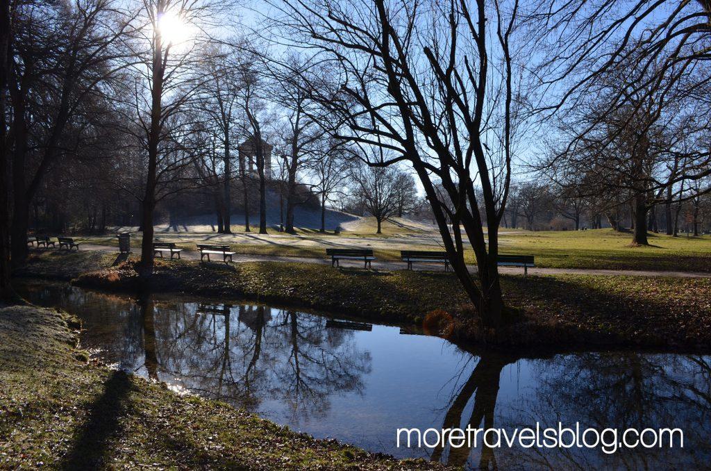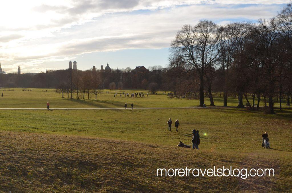 Las torres que nombraba anteriormente (las de la Frauenkirche) dicen que se ven bellísimas desde el English Garden y por ello allí fuimos, en la búsqueda de una famosa colina, Monopteros, desde donde se divisa una buena parte de la ciudad. Y efectivamente desde allí se ve muy bien las torres de la Frauenkirche. Monopteros está ligeramente en alto con respecto al resto del parque.