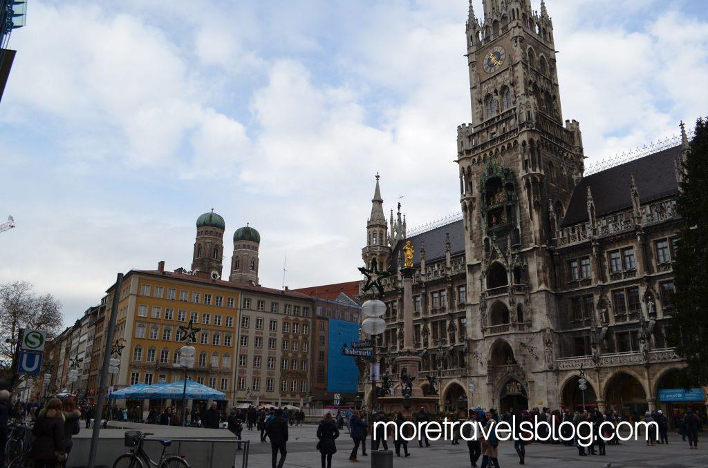 Como ya dije, en el metro hay solo dos salidas, pues solo una posibilidad para salir directo a Marieplatz, nosotros tomamos justo la que no era. Salimos a una cosa llamada Marienhof, que es como un pequeño parque. De allí la plaza queda a solo una cuadra. Al llegar se puede admirar la fantástica arquitectura del Neues Rathaus, que tiene pinta de iglesia gótica pero que en realidad es la alcaldía. También hay una oficina turística dentro.