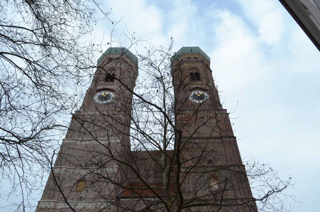 Seguimos caminando y entramos a varias iglesias del centro, las iglesias sobran en Munich, una ciudad muy católica y muy legada a los principios de la religión. Una iglesia que recomendamos ver, por su belleza y por sus famosas torres gemelas que veréis en cada postal y skyline de Munich, es la Frauenkirche. Es la iglesia más grande de la ciudad y por dentro es muy bella, en Navidad está decorada con árboles de navidad naturales iluminados, y un gran pesebre. Aquí también se puede subir a una de las torres para admirar la vista.