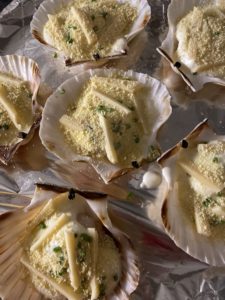 Una receta de Francia muy sencilla y rápida de preparar si ya compras las vieiras abiertas y limpias como lo hago yo. Pide a tu pescadero que las limpie y te las deje pegadas a la concha. Solo tendrás que preparar la mezcla, hornear y disfrutar.